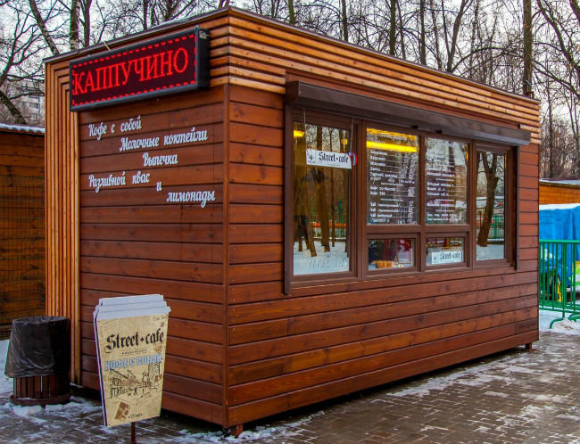 Уличные киоски, как правило, представляют собой быстровозводимые конструкции из сэндвич-панелей, устанавливаемые на облегченный фундамент. Их ключевые преимущества — мобильность и доступная стоимость.