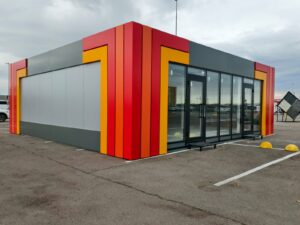 Магазин для торговли представлен большим выбором категорий фасадных отделочных материалов и типоразмеров, поэтому любой клиент может подобрать себе здание с требуемыми параметрами. Технология изготовления магазинов проработана и ориентирована на поточное производство. Так же к магазину можно достраивать секции, тем самым увеличивая торговую площадь.